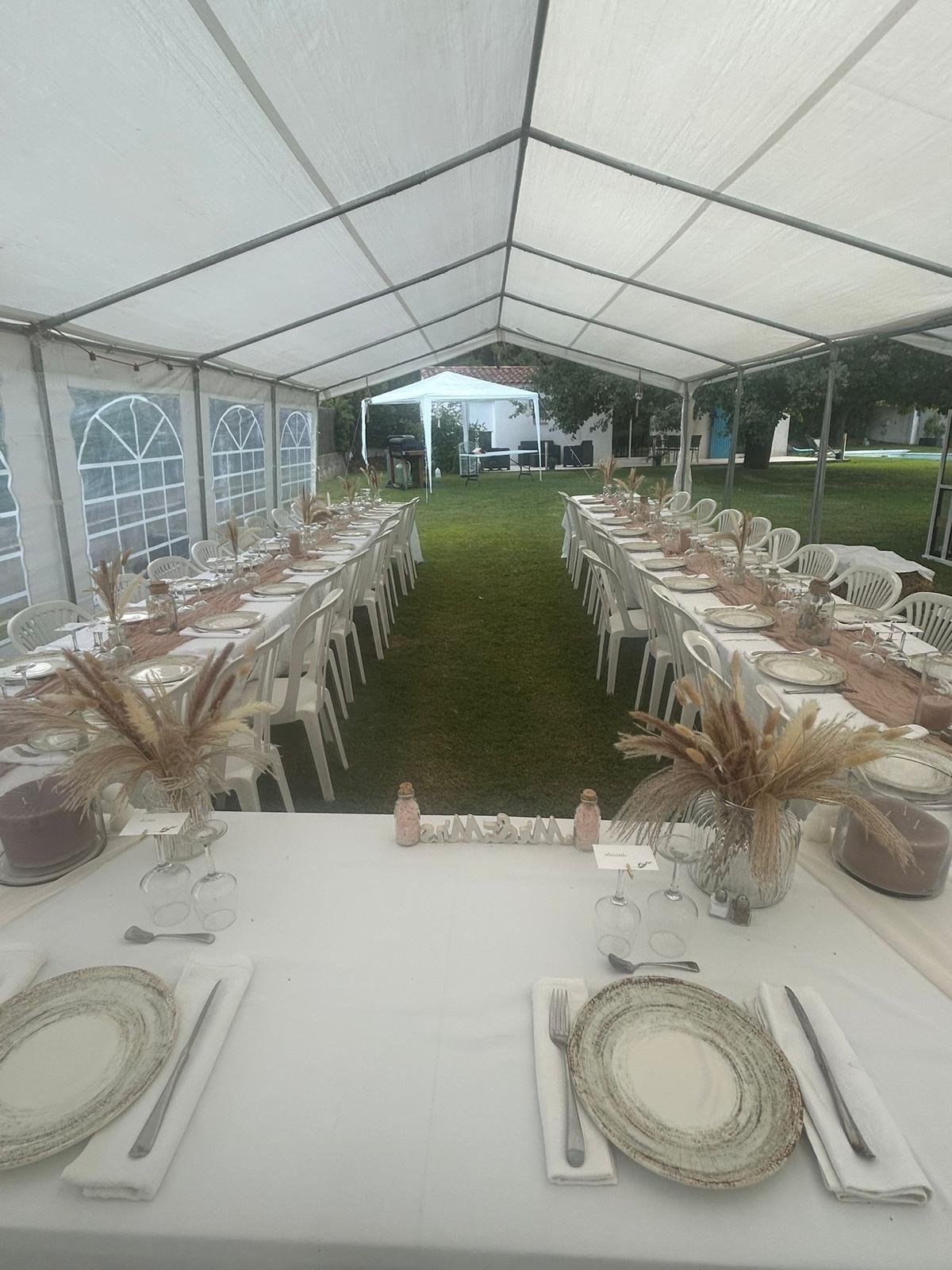 Tables, chaises et parasols non fournis (location possible via un prestataire). Libre choix du traiteur et des autres prestataires, avec possibilité de mise en relation avec un food truck local et un loueur de matériel